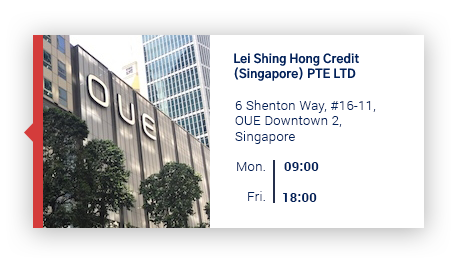 Lei Shing Hong Credit (Singapore) Pte Ltd is a wholly-owned subsidiary of Lei Shing Hong Limited (“LSH”). The LSH Group, is an international award-winning conglomerate headquartered in Hong Kong. Founded in Hong Kong since 1979, LSH has grown into a conglomerate with interests spanning Automobile, Machinery, Property, Trading and Financial Services with more than 300 regional offices, serving 11 markets, namely, Hong Kong, Mainland China, South Korea, Taiwan, Vietnam, Cambodia, Malaysia, Singapore, Australia, UK and Germany.